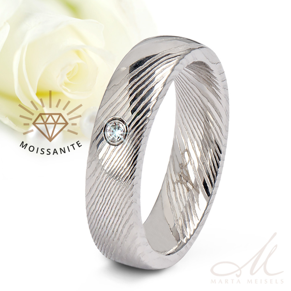Aurora Moissanite - damaszkuszi acél Női köves karikagyűrű RGW-TZ-DS103750MO