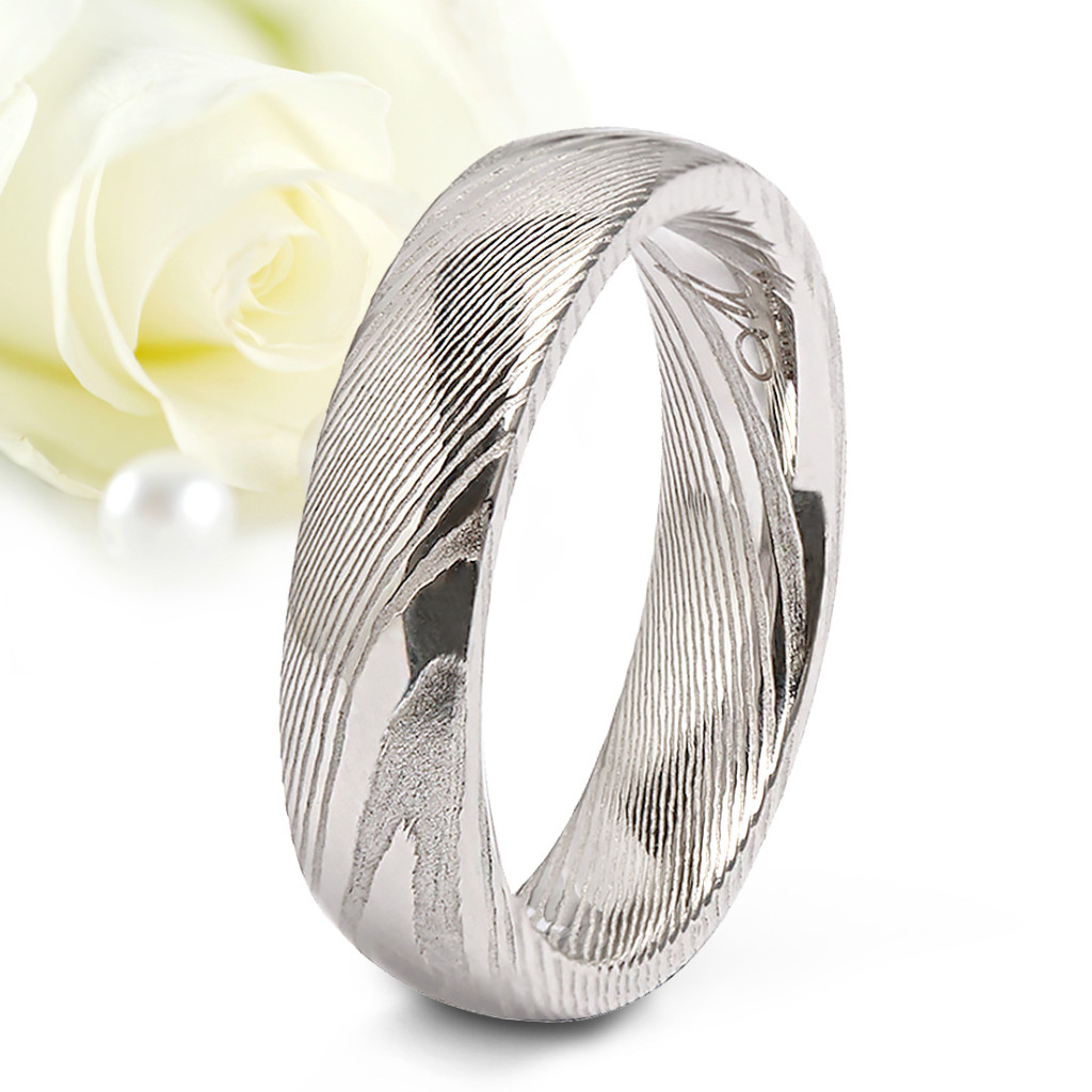 Az Aurora damaszkuszi acél férfi karikagyűrűt letisztult és egyszerű design jellemzi, így kiválóan illeszkedik a modern férfiak stílusához.