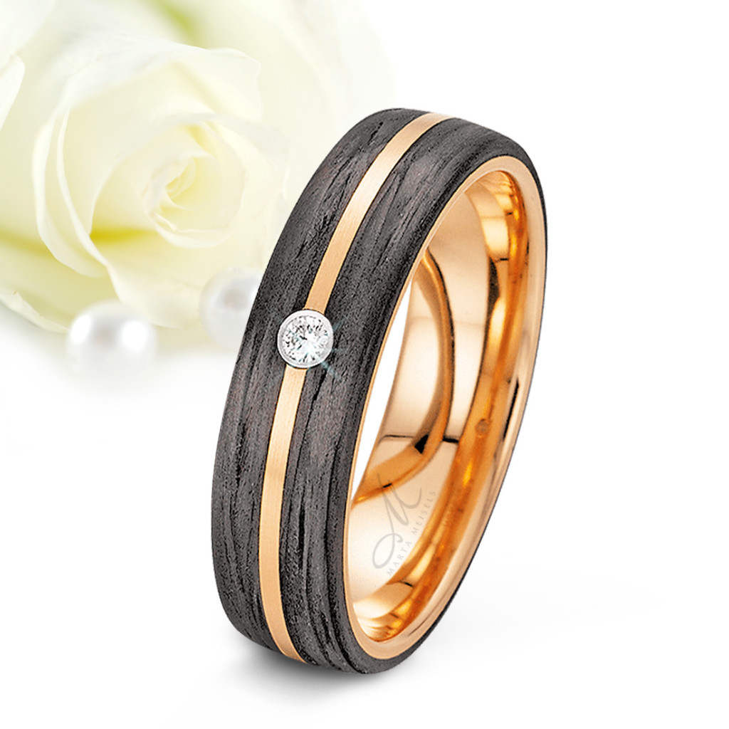 Az Erna Zirconia női karikagyűrű a Marta Meisels kollekciójának egyik innovatívabb darabja, amely a modern technológia és a kifinomult elegancia találkozásából született. Ez a női gyűrű titán és high-tech fekete karbon szálak kombinációjával készült. A karbon szálak lenyűgöző textúrája futurisztikus megjelenést biztosít, és elegáns kontrasztban van a fényes rozé arany bevonattal. Mindezt egy briliáns csiszolású cirkónia kristály még finoman meg is koronázza.