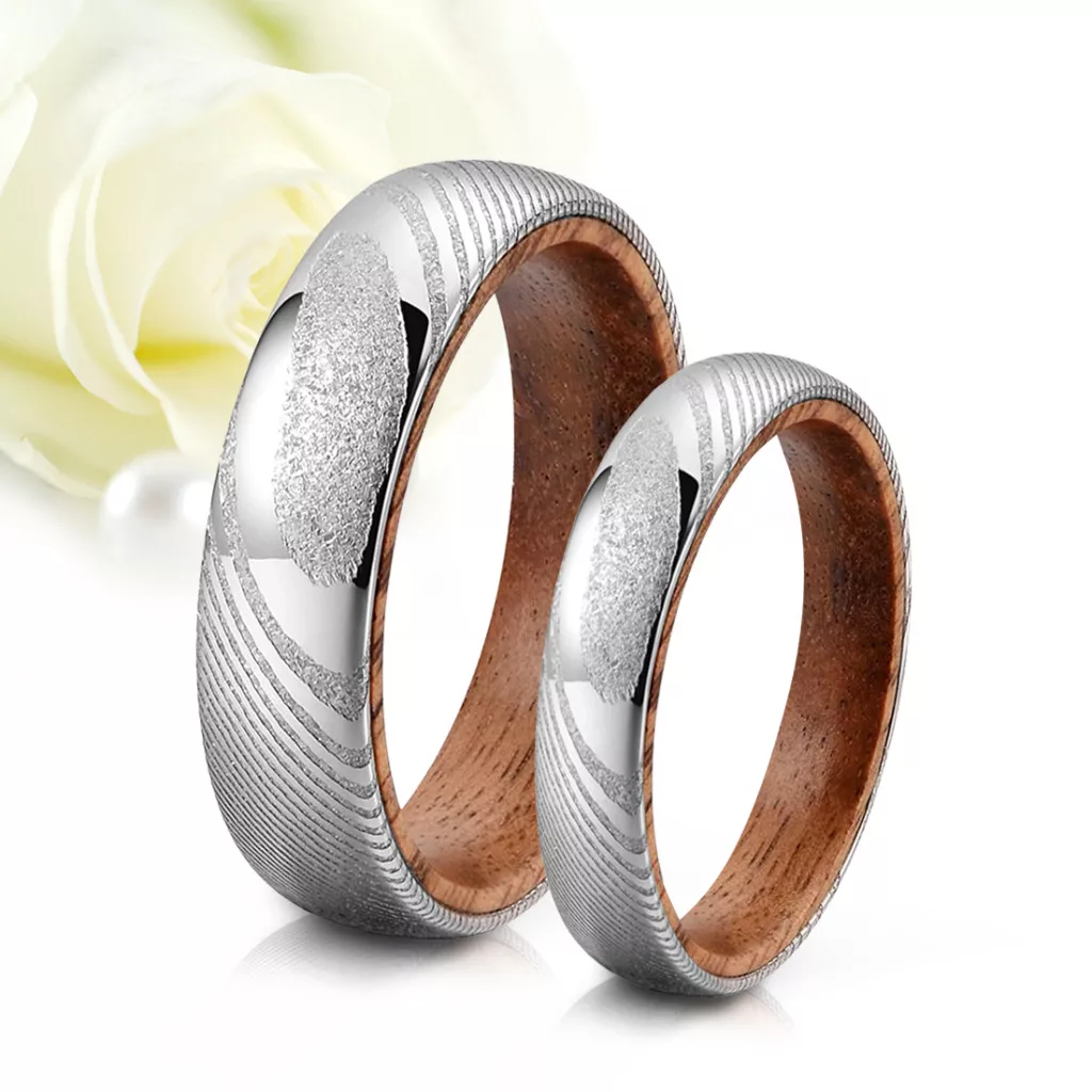 A gyűrű anyaga magas minőségű damaszkuszi acél, amely egyedi mintázatával és tartósságával kiemelkedik. A damaszkuszi acél különleges textúrája és színárnyalatai varázslatosan kombinálódnak a brazil rózsafával, amely természetes melegséget és eleganciát kölcsönöz a gyűrűnek. Nincs két egyforma gyűrű, minden darab egyedi!