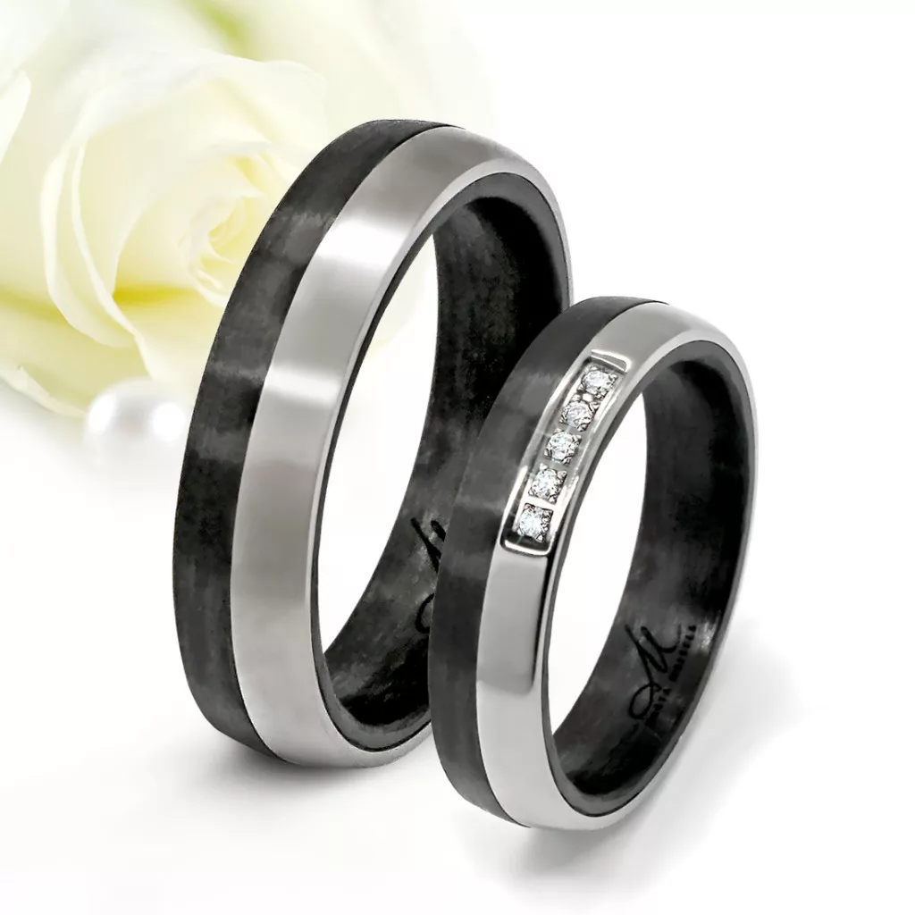 Elegáns és modern, a high-tech fekete karbon és titán kombinációjú köves karikagyűrű tökéletes választás a kifinomult nők számára.