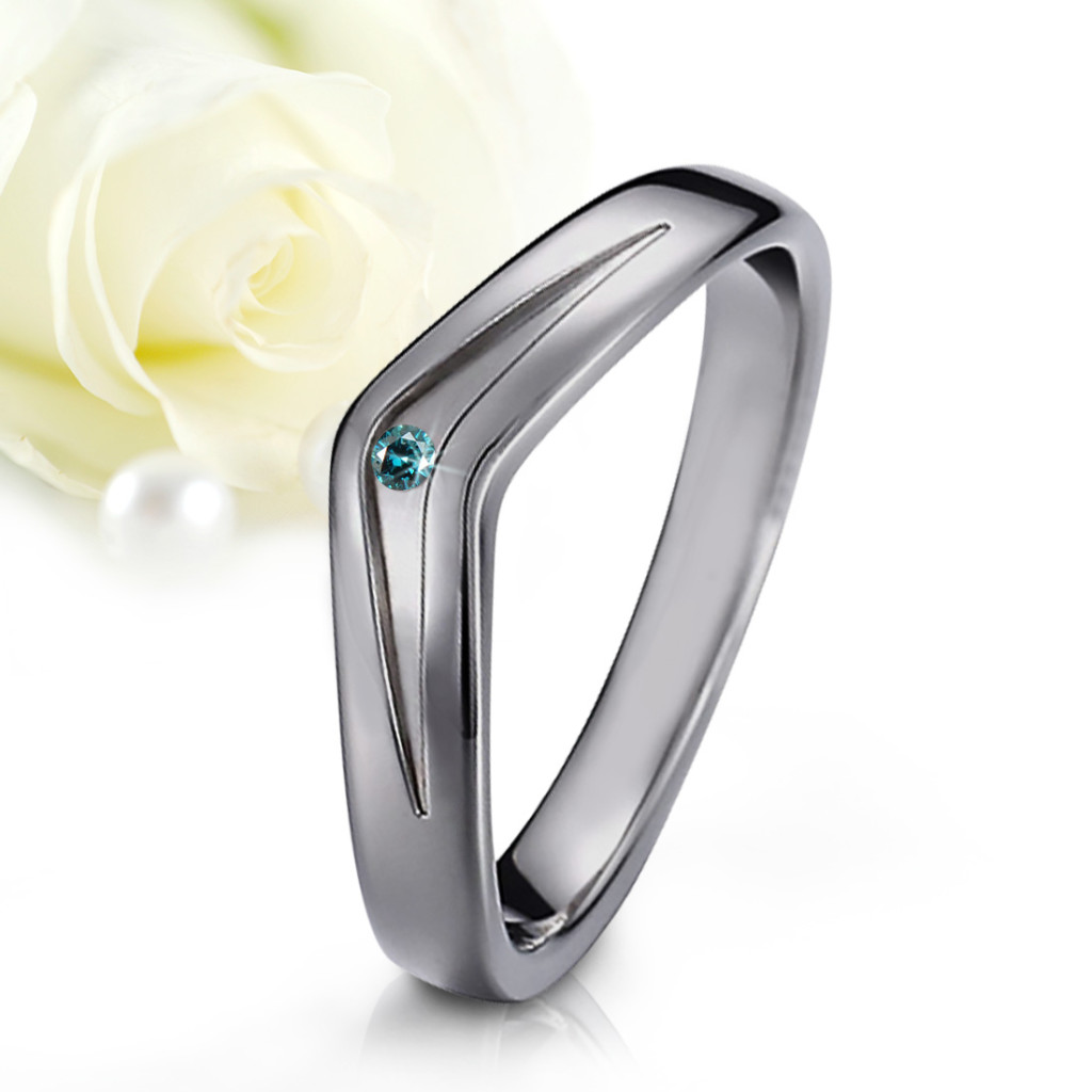 Ez a modern stílusú, kék gyémánttal díszített eljegyzési gyűrű tökéletes választás azoknak, akik egyedi ékszert keresnek. Tiszta, hipoallergén titánból készítettük, így kényelmes és allergiamentes viseletet biztosít.
