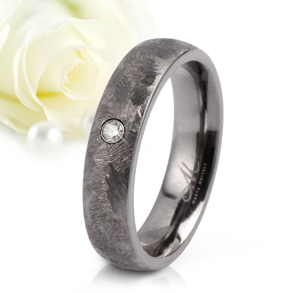 A karikagyűrű anyaga a ritka és exkluzív tantál, amely egyedülállóan elegáns megjelenést kölcsönöz a gyűrűnek. A tantál szépsége az egyedülálló sötét színében és fényvisszaverő képességében rejlik, mely csodálatosan kiegészül a gyűrűbe foglalt gyémánttal.